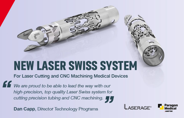 Dan Capp, Director Technology Programs at Paragon Medical says of the new arrival, “The medical device sector is an exciting place to work, as technology and innovation are advancing at an incredible rate. At Laserage we are proud to be able to lead the way with our high-precision, top quality Laser Swiss system for cutting precision tubing and CNC machining. We see our system at Laserage as being highly valuable for manufacturing surgical and medical instruments, structural heart components, orthopedic tools and implants and vascular applications.”